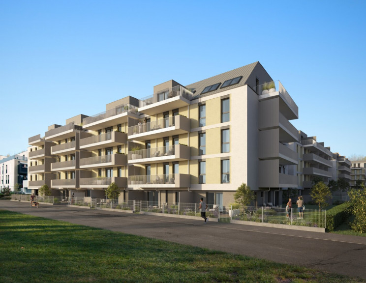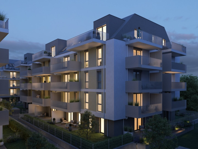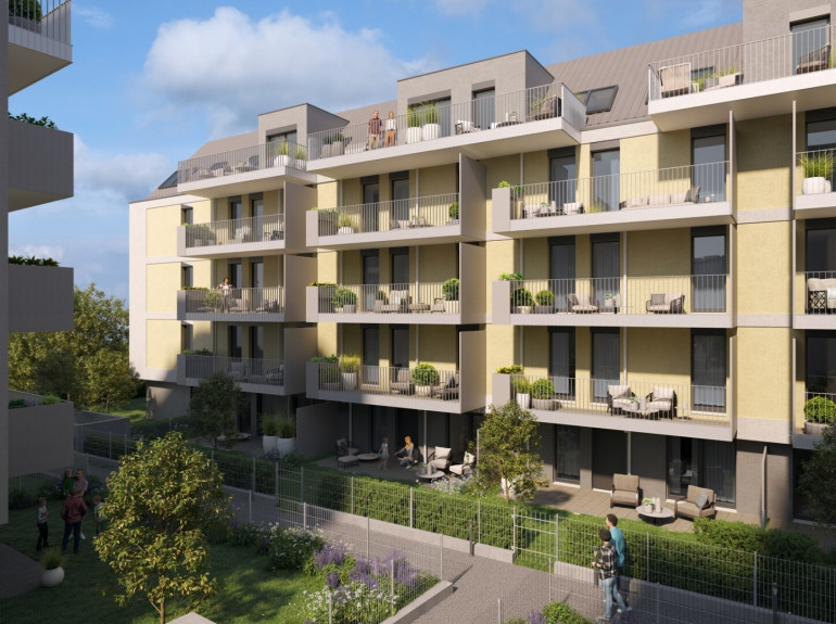 Das Projekt umfasst insgesamt 293 Mietwohnungen, die sich auf sechs Gebäude mit jeweils fünf oberirdischen Geschossen verteilen. Die Wohnungen, mit Größen von 2 bis 4 Zimmern (39 - 80 m²), verfügen über hochwertige Parkettböden, Fußbodenheizung mittels Luftwärmepumpe und großzügige Freiflächen. Jede Einheit ist mit modernen Einbauküchen und elektrischen Außenjalousien ausgestattet, um höchsten Wohnkomfort zu gewährleisten.