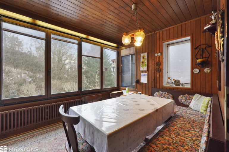Dieses Haus ist der perfekte Rückzugsort für alle, die Ruhe, Natur und individuelles Wohnen schätzen. Als letztes Haus in einer Sackgasse am Waldrand genießen Sie absolute Privatsphäre, traumhaften Fernblick und direkten Zugang zu Wanderwegen. Wintergarten, Garten und großer Weinkeller bieten Ihnen vielfältige Möglichkeiten, Ihr Zuhause nach Ihren Vorstellungen zu gestalten.