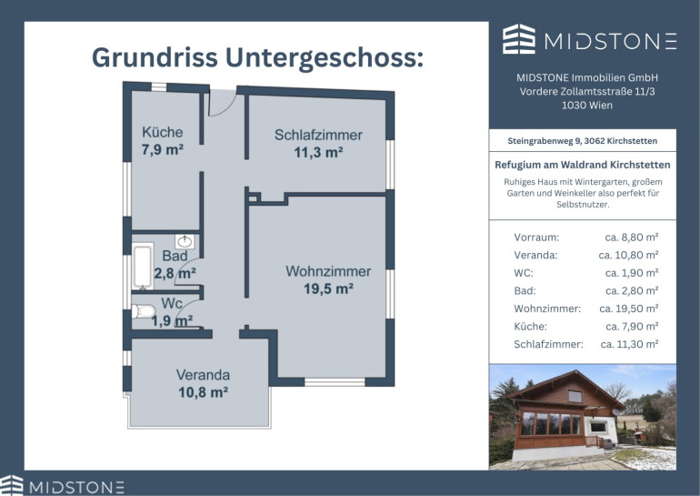 Die Liegenschaft befindet sich in der Steingrabenweg in Totzenbach, einer Sackgasse mit äußerst geringer Verkehrsfrequenz. Dadurch ergibt sich eine besonders ruhige und geschützte Wohnsituation, die vor allem von Anrainern genutzt wird und ein hohes Maß an Privatsphäre bietet. Das Umfeld ist von gepflegten Einfamilienhäusern und viel Grün geprägt und vermittelt ein angenehmes, dörfliches Wohngefühl. Die Infrastruktur ist dennoch sehr gut. Die Volksschule ist bequem zu Fuß erreichbar, was die Lage besonders familienfreundlich macht. Zusätzlich ist auch der Gasthof Gnasmüller und ein Friseur sowie viele weitere Geschäfte in der direkten Nähe. Auch das Ortszentrum von Kirchstetten mit Nahversorgern, Kindergarten und weiteren Einrichtungen des täglichen Bedarfs ist in kurzer Zeit erreichbar. Die Anbindung an das regionale Verkehrsnetz ermöglicht eine gute Verbindung in die umliegenden Orte sowie Richtung Wien und St. Pölten. Insgesamt verbindet dieser Standort absolute Ruhe mit praktischer Erreichbarkeit und hoher Lebensqualität und eignet sich ideal für all jene, die entspanntes Wohnen in einer gewachsenen Wohngegend schätzen.Beschreibung der Immobilie