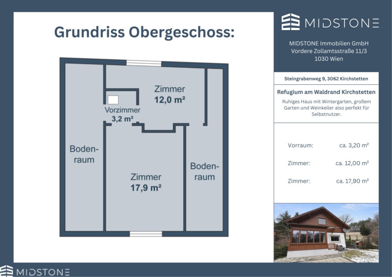 Obergeschoss mit ca. 32 m² Nutzfläche, 2 zusätzliche Zimmer