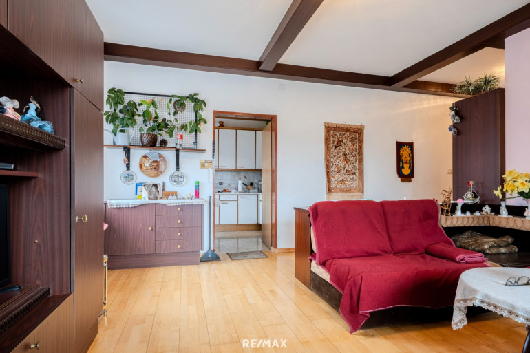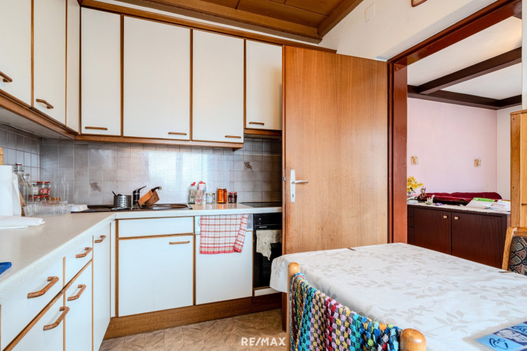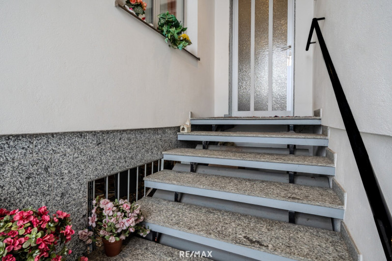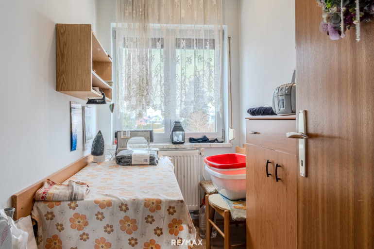 Das Erd- bzw. Wohngeschoss überzeugt durch eine klassische und gleichzeitig sehr gut nutzbare Aufteilung. Hier stehen zwei Schlafzimmer, ein Wohnzimmer mit direktem Zugang zur Terrasse, eine separate Küche, ein Abstellraum, ein Badezimmer mit Badewanne sowie ein WC zur Verfügung. Besonders hervorzuheben ist das großzügige Esszimmer, das als zentraler Treffpunkt für Familie und Gäste dient und ein angenehmes Wohngefühl vermittelt.
