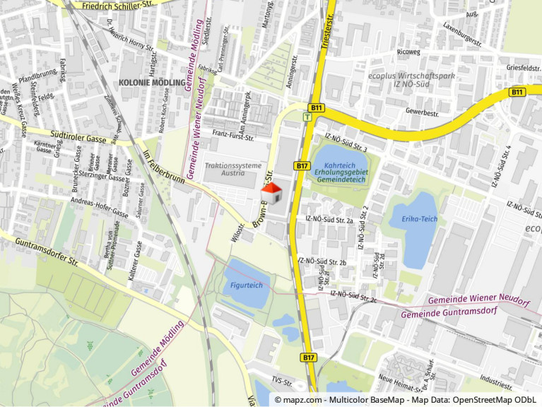 Die Liegenschaft liegt im Wiener Neudorfer Industriegebiet IZ-NÖ Süd und ist über die Autobahn A2 (Abfahrt Wiener Neudorf) direkt erreichbar. Weiters kann das Objekt auch sehr gut über die B17-Triester Bundesstraße angefahren werden. Die Zufahrt ist über vier Ein- und Ausfahrten entlang der Grundstücksgrenze Brown-Boveri-Straße möglich. Manipulationsflächen und Andockstationen mit Laderampen für LKWs mit Hebebühnen sind in entsprechender Anzahl. Die Anbindung durch öffentliche Verkehrsmittel ist insbesondere durch die Autobusstationen G1, 263 und 360 sowie die Badner Bahn, die alle in kurzer Fußläufigkeit erreichbar sind, gegeben.Beschreibung der Immobilie
