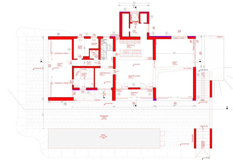 Die Eyecatcher der Außenanlage sind die rund 200 m² große, ebenerdige Terrasse (Pewter Blend Naturstein), der Pool mit 25 x 3 x 1,6 m und der Weinkeller. Um eine ideale Nutzung der beiden Objekte Pool & Weinkeller zu gewährleisten, müssen Wartungsarbeiten erledigt werden, bevor man das sensationelle Schwimmerlebnis bzw. einen guten Tropfen aus dem eigenen Weinkeller genießen kann.