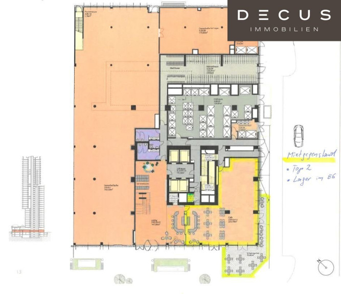 - EG, Gastronomiebereich, ca. 212,30 m²: € 15,95/m²/Monat/netto/Miete (€ 3.386,16/Monat/netto)