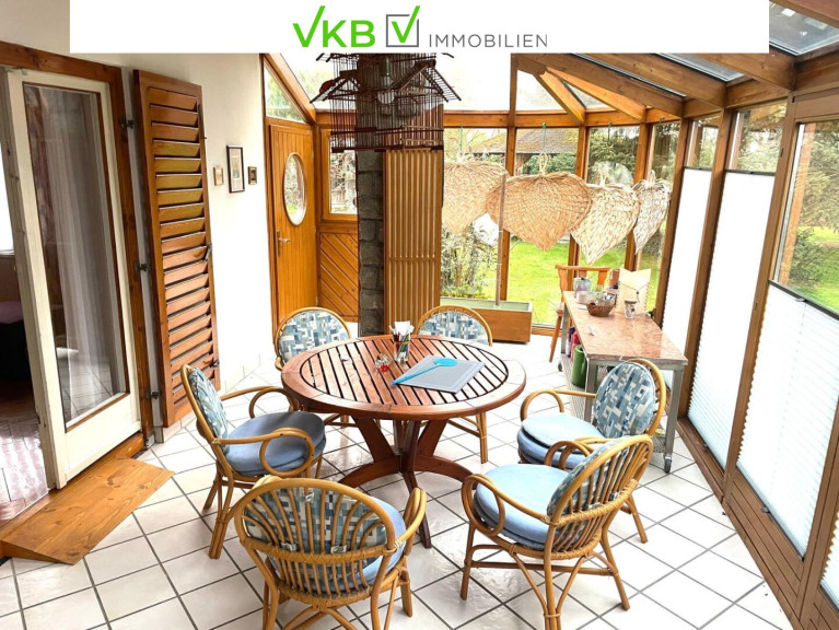 Besonders hervorzuheben ist der lichtdurchflutete Wintergarten, der Ihnen das ganze Jahr über einen gemütlichen Raum bietet, um die Natur auch bei weniger schönem Wetter zu genießen. Das Badezimmer mit WC ist modern ausgestattet und rundet das komfortable Raumangebot ab.