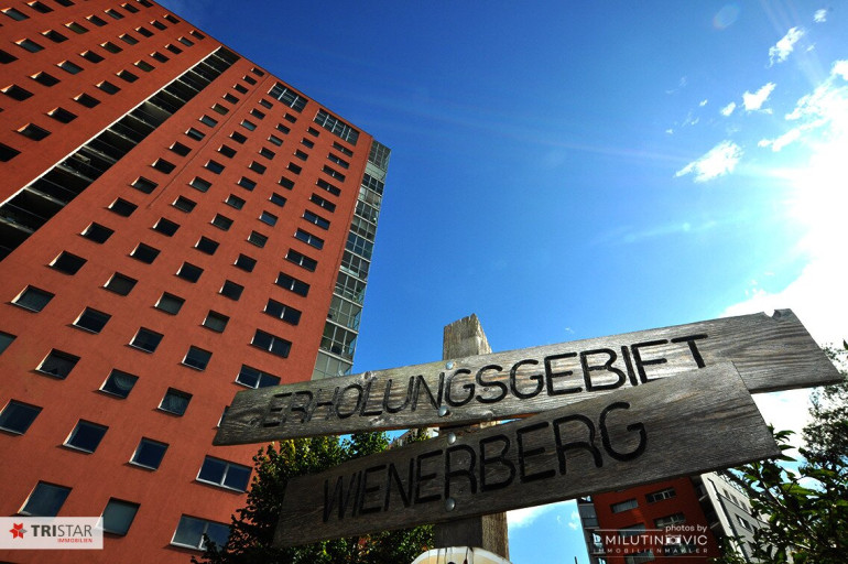 Die gesamte Wohnanlage ist direkt am Erholungsgebiet Wienerberg gelegen. Man hat das Gefühl, in einem Park zu wohnen – abgeschirmt vom Straßenlärm und dennoch mitten im Geschehen.