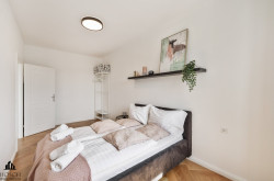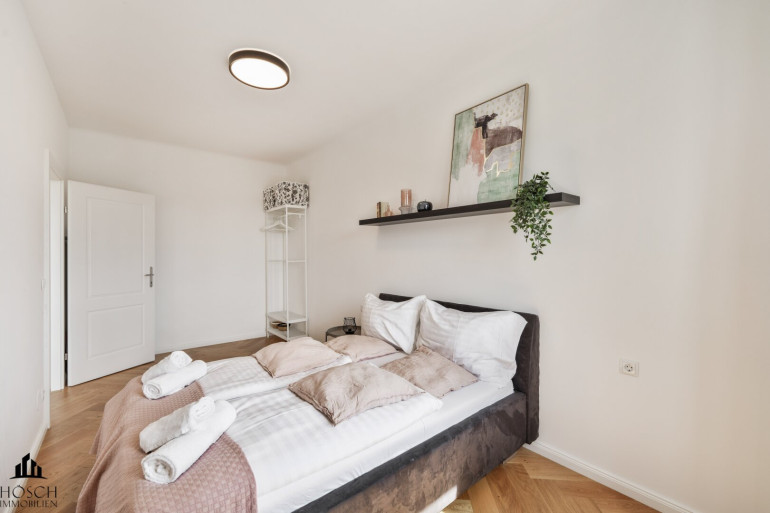Die Wohnung verfügt über ein großzügiges Schlafzimmer mit ca. 14,10 m² sowie ein Kinder- oder Arbeitszimmer mit ca. 10,90 m². Das moderne Badezimmer in zeitlos elegantem Stil gehalten, ist mit einer Walk-In Dusche ausgestattet, während das separate WC inkl. Waschbecken zusätzlichen Komfort bietet.