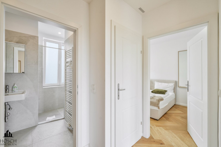Die Ausstattung präsentiert sich äußerst hochwertig. Der klassische Fischgrätparkett verleiht den Räumlichkeiten einen ganz besonderen Charme.