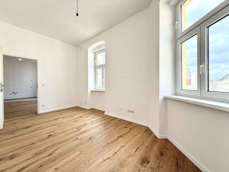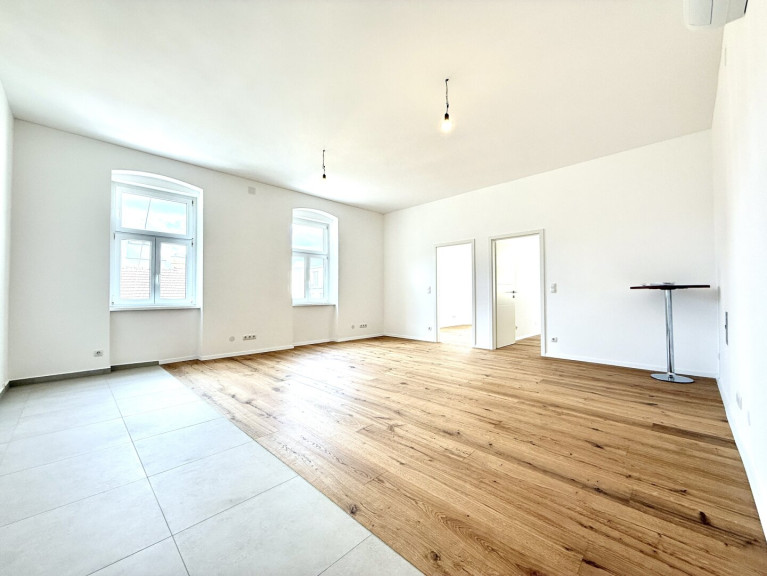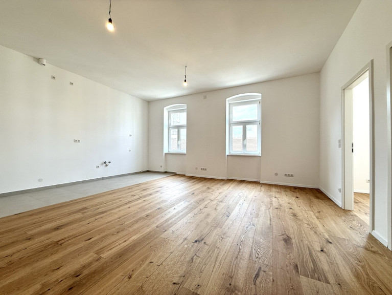 Die Wohnung selbst wurde mit viel Liebe zum Detail von Grund auf saniert und präsentiert sich in einem erstklassigen Zustand. Herzstück ist die großzügige, lichtdurchflutete Wohnküche mit westseitiger Ausrichtung und modernen Kunststoff-Isolierfenstern. Der Wohnbereich ist mit hochwertigem österreichischem Parkett ausgestattet, während der Küchenbereich durch stilvolle Fliesen optisch und funktional überzeugt. Sämtliche Anschlüsse inklusive Abluft für einen Dunstabzug sind bereits vorbereitet; ein durchdachter Küchenplan kann auf Wunsch übernommen werden.