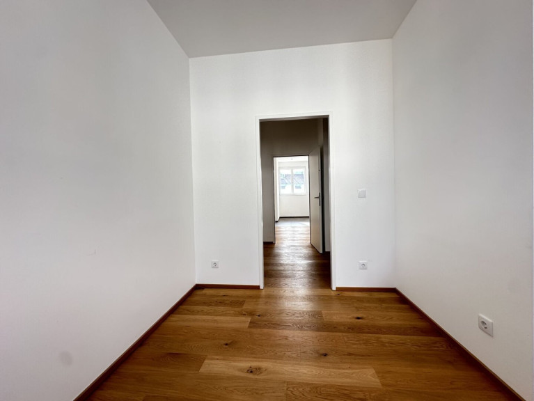Der Grundriss ist gut durchdacht: man betritt die Wohnung, gelangt in den Vorraum, von dort in die Wohnküche – zentral gelegen –, die Freifläche (der Balkon) ist direkt angebunden. Die Schlafzimmer sind separiert, sodass Ruhe gewährleistet ist.