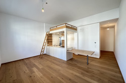 • Inklusive moderner Kochnische und maßgeschneidertem Hochbett
