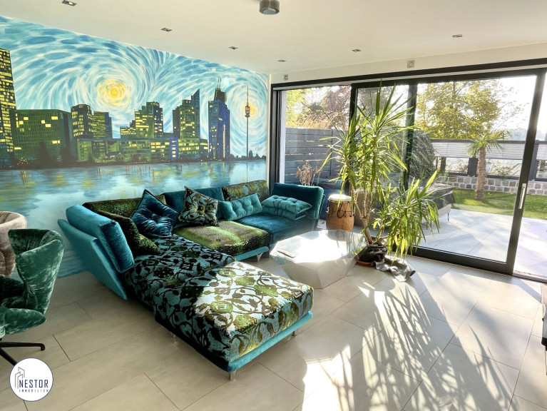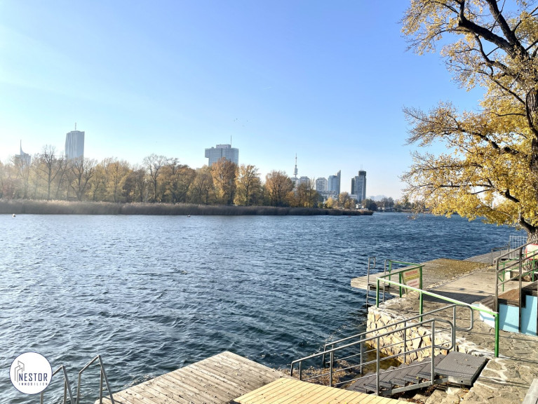 In südwestlicher Richtung können Sie in Ihren eigenen Garten auf seltenem Eigengrund (absolute Rarität) sehen. Von dort aus erstreckt sich der weit schweifende Blick über die Alte Donau und die Skyline der Donau City. Es wird in jeglicher Hinsicht deutlich, was ein Wohnambiente der Extraklasse ausmacht. In perfekter Verkehrsanbindung (sowohl PKW als auch öffentlich) und grüner Lage befinden Sie sich in optimaler Nähe zum Zentrum. Dieses Juwel liegt direkt im angrenzenden Naturschutzgebiet und Nah-Erholungszentrum.