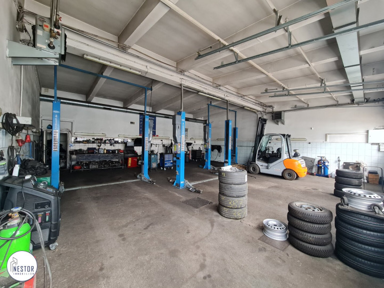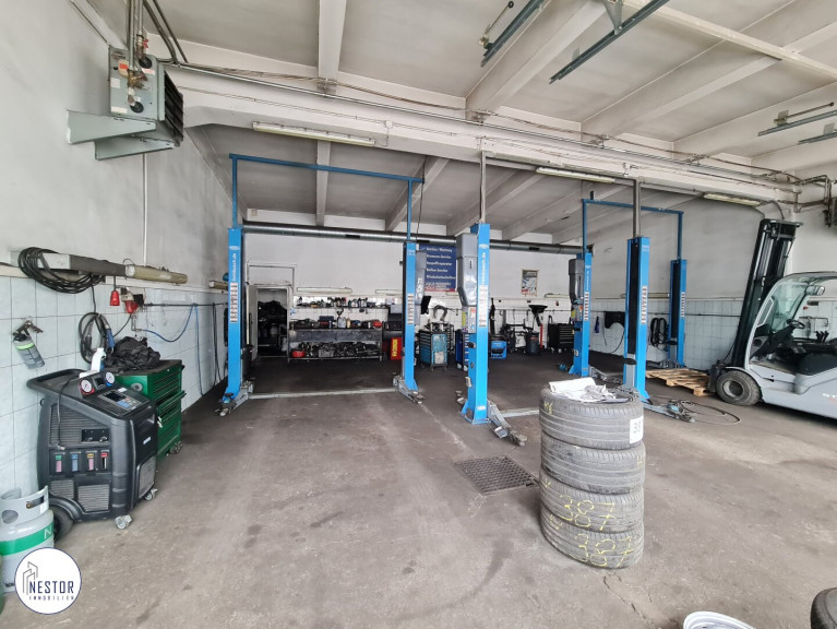 (davon 5 Hebebühnen, 1 Kanalgrube, mechanische Ausstattung für die Ausgabe des Pickerls bis 3,5 T., komplettes Werkzeug) - eine Pausenräumlichkeit für Mitarbeiter sowie Garderobe, WC und Badezimmer