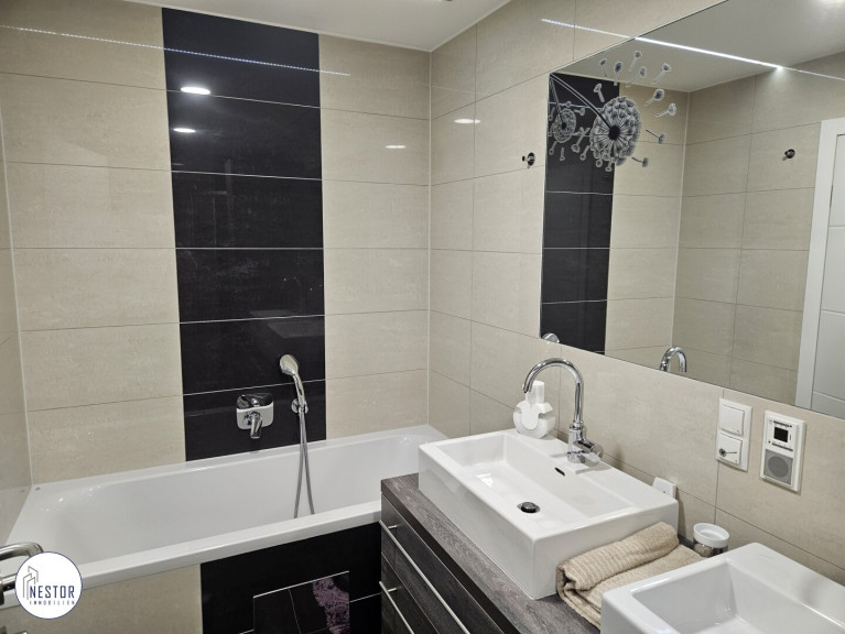 + Das Badezimmer wurde 2017 ebenso neu gemacht und hochwertig ausgestattet. (Doppelwaschbecken mit Grohe Armatur, etc.). Das WC wurde mit einem Handwaschbecken ausgestattet.