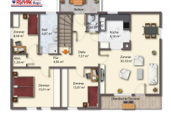3 Zimmer in verschiedenen Größen finden Sie ebenfalls noch auf dieser Etage. Ein modernes Badezimmer mit Großraumdusche sowie ein separates WC und einen Abstellraum, alles in allem genug Platz für Hund und Katz und Spatz.
