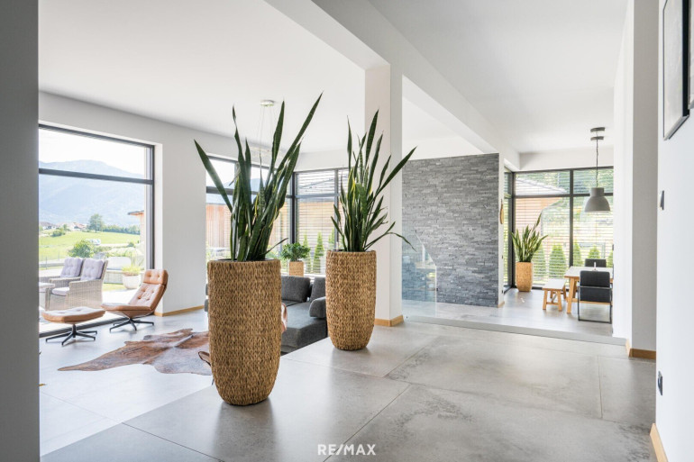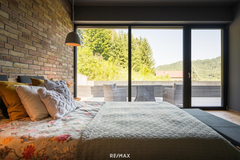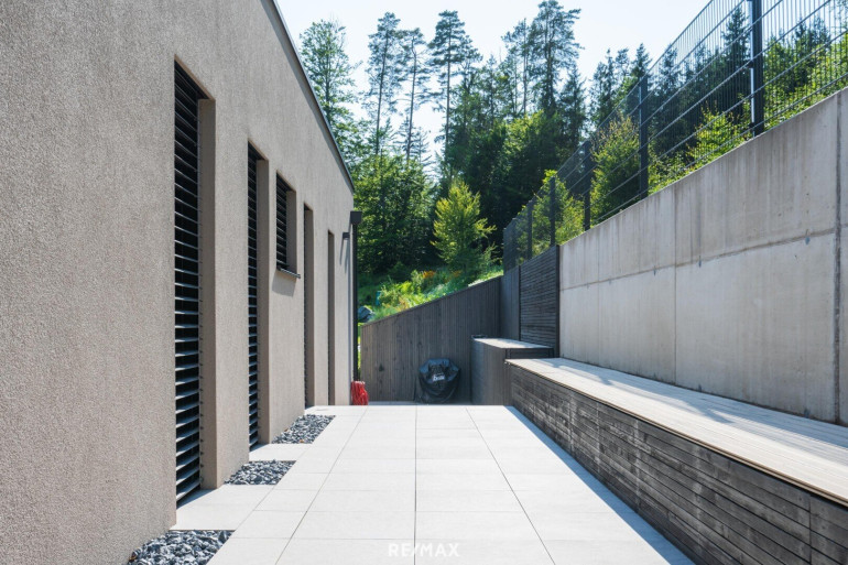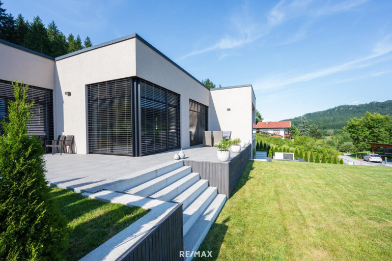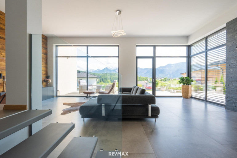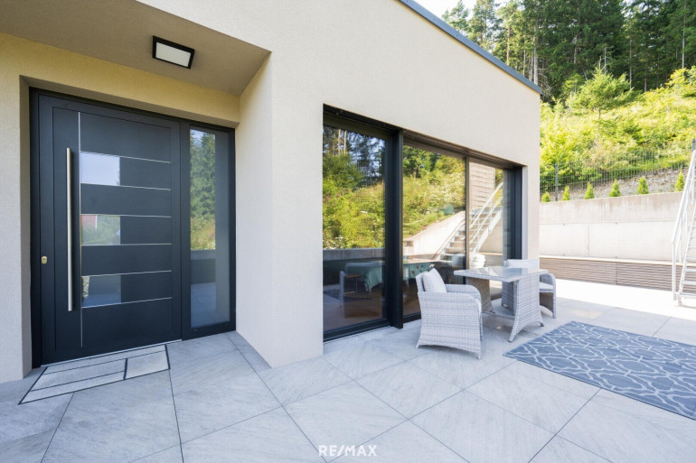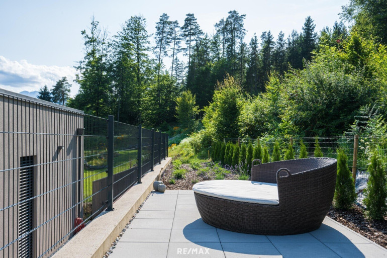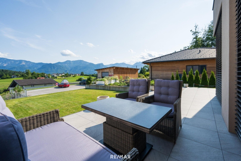 * großzügige Südwest-Terrasse mit Fernblick auf die Karawanken, ca. 56 m²