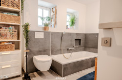 Zu den letzten wesentlichen Erneuerungen zählen die Sanierung des Badezimmers im Erdgeschoss, der Austausch mehrerer Böden und Türen sowie die Erneuerung diverser Versorgungsleitungen.