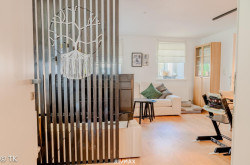 Im Erdgeschoss befinden sich ein Büro, ein Badezimmer, Abstellräume, eine Küche mit Spielecke sowie ein großzügiger Wohn- und Essbereich. Im Obergeschoss stehen Ihnen vier Schlafzimmer, ein weiterer großzügiger Wohn- und Essbereich, eine Küche sowie ein Badezimmer zur Verfügung. Durch die zwei separaten Eingänge eignet sich das Haus auch ideal als Zweifamilienhaus.