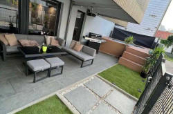 Hochwertige stylische Ausstattung im gesamten Objekt. Sehr helles Wohnzimmer mit Essbereich und Dan-Küche samt Bora Geräten.