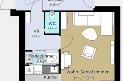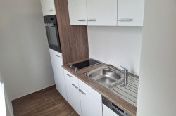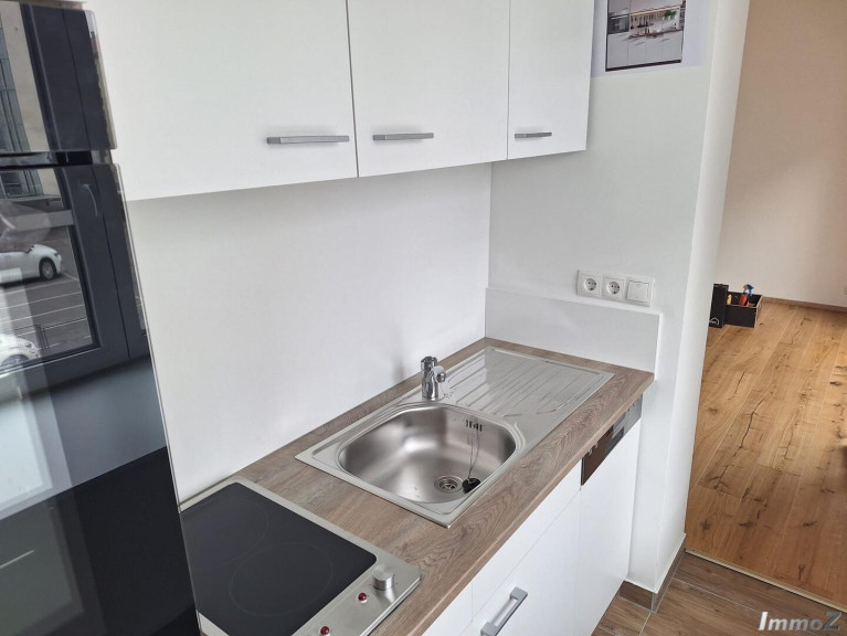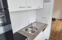 Wohn-Schlafraum mit französischen Balkon, offen zur möblierten Küche mit Fenster. (neue Fenster und Türen, Infrarot Deckenheizung, neue Böden,Elektrik neu etc.)