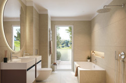 - Edle Landhausdielen (Eiche), Feinsteinzeug in Nassräumen