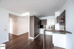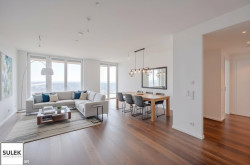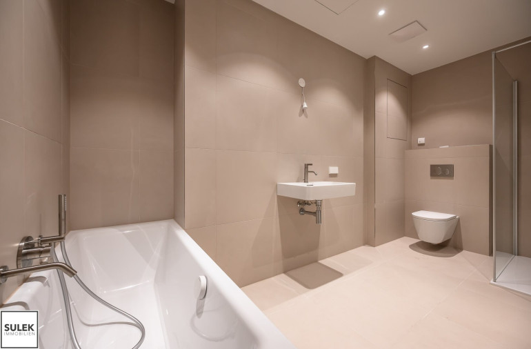Raumhöhen von 2,70 m, bodentiefe Fenster, Fußbodenheizung und Deckenkühlung schaffen ein Wohngefühl auf höchstem Niveau. Der südostseitig ausgerichtete Balkon lädt zum Entspannen und Verweilen ein.