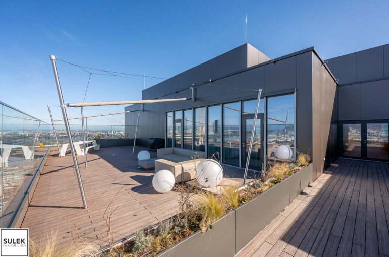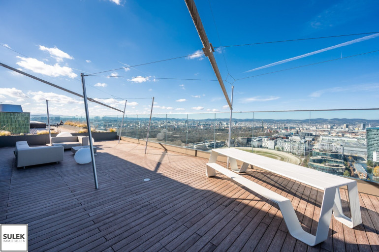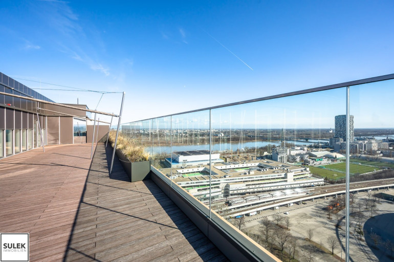 Wohnen in der 25. Etage mit freiem Blick über Wien.