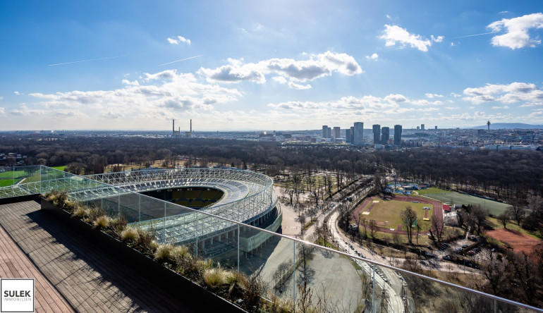 - süd-ostseitig ausgerichteter Balkon (rd. 22m²) mit Blickrichtung Stadion & Prater - teilweise überdacht und daher wetterunabhängig nutzbar!