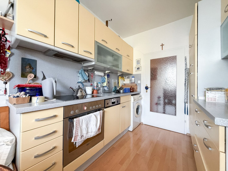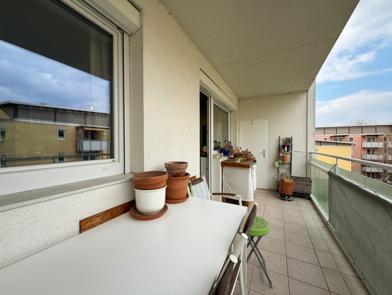 Die Eigentumswohnung befindet sich im 3. Stock mit Lift. Die hellen Zimmer sind mit hochwertigen Materialien wie Fliesen, Laminat und Parkett ausgelegt und schaffen eine warme, einladende Atmosphäre. Ein besonderes Highlight ist die Loggia, die Ihnen einen geschützten Außenbereich bietet, um frische Luft zu genießen oder entspannte Stunden im Freien zu verbringen. Das renovierte Badezimmer ist mit einer Dusche und einem Bidet ausgestattet. Das WC ist separat begehbar.