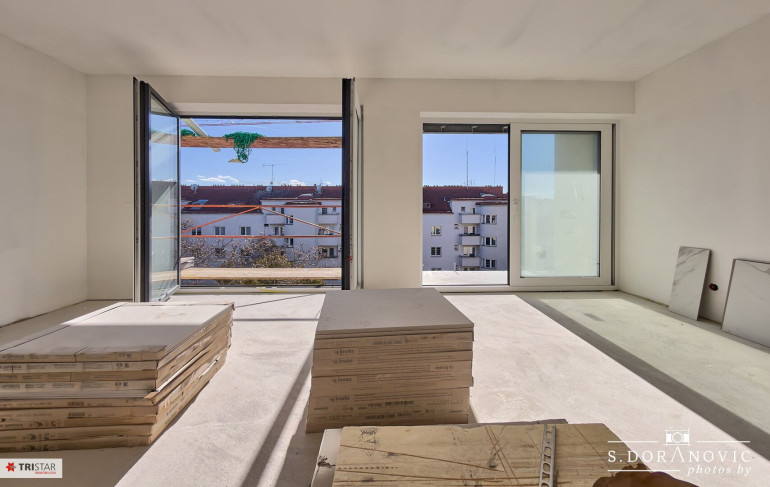 Auf einem wunderschönen Altbau unweit des Siebenbrunnenplatzes entstehen aktuell drei neu errichtete Stockwerke (4.–6. Stock), die jeweils zwei großzügige Wohnungen mit hochwertiger, schlüsselfertiger Ausstattung bieten. Im Zuge der Aufstockung wird das Gebäude umfassend modernisiert (Aufzug, Stiegenhaus, Fassade, Balkone, Keller) und technisch sowie optisch auf einen zeitgemäßen Standard gebracht.
