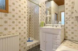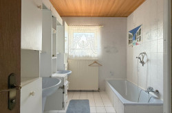 Die drei Badezimmer sind vollständig verfliest und funktional nutzbar, jedoch ebenfalls dem ursprünglichen Baujahr entsprechend ausgestattet.