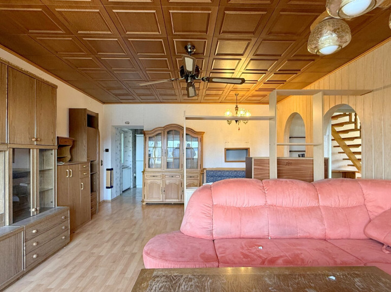 Das Haus ist in zwei Wohneinheiten gegliedert und verfügt insgesamt über acht Zimmer, zwei Küchen und drei Badezimmer. Die Grundrisse sind großzügig angelegt und bieten eine solide Basis für eine zeitgemäße Modernisierung.