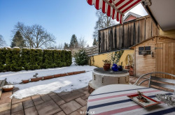 Die großzügige Terrasse erweitert den Wohnraum ins Freie und bietet viel Platz für entspannte Stunden. Ein besonderes Detail ist der alte historische Brunnen auf der Terrasse, der dem Außenbereich einen einzigartigen Charakter verleiht. Der private Garten schafft zusätzlichen Freiraum direkt vor der eigenen Wohnung.