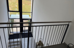Die Wohnung hat in jedem der beiden Stockwerke einen Eingang, neben der Treppe im Inneren der Wohnung kann man auch mit dem Lift zwischen den Geschossen wechseln.