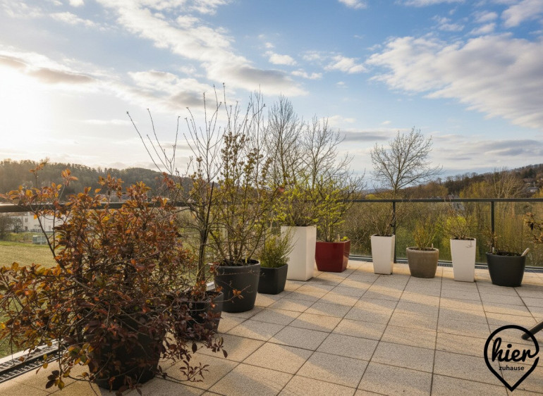 Diese Penthouse-Maisonettewohnung befindet sich in Graz-Mariatrost in der Nähe der Basilika und bietet eine Kombination aus Wohnung und großzügigen Freiflächen.