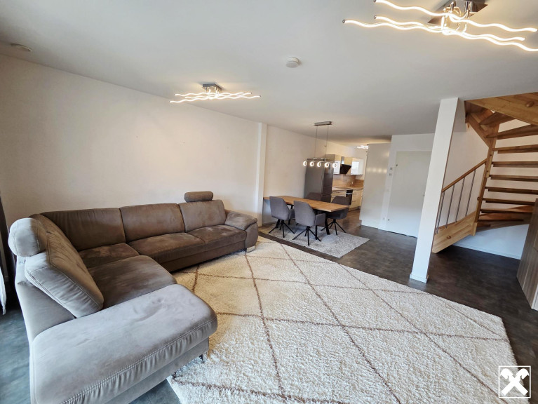 Baujahr 2017, GED Reihenhaus, Vollholzbauweise, kontrollierte. Wohnraumlüftung, Klimaanlage in einem Schlafzimmer, Zentralheizung Luftwärmepumpe, zwei Autoabstellplätze, PV Anlage möglich, Starkstromleitung für Elektroauto vorhanden, Terrasse, Fahrradraum, Inventar nach Absprache, Bauland/Wohngebiet, Wfl. ca. 95,84m², nicht unterkellert, uvm..