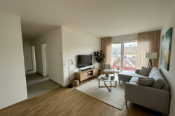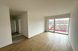Die Raumaufteilung umfasst einen einladenden Vorraum, ein modernes Badezimmer, ein separates WC, einen praktischen Abstellraum, zwei helle Zimmer sowie eine großzügige Wohn-Essküche, die das Herzstück der Wohnung bildet und zum Wohlfühlen einlädt. Ein besonderes Highlight ist der großzügige Balkon, der sowohl von der Wohn-Essküche als auch von den beiden Zimmern aus direkt begehbar ist. Dadurch entsteht ein besonders offenes und lichtdurchflutetes Wohngefühl mit harmonischem Übergang zwischen Innen- und Außenbereich.