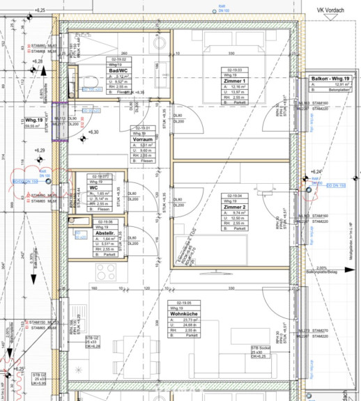 Parkett, Fliesen, Gas, Fußbodenheizung, Personenaufzug, Dusche