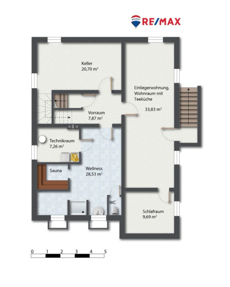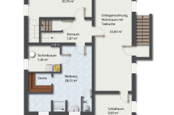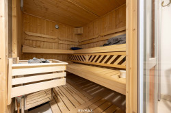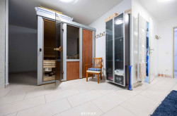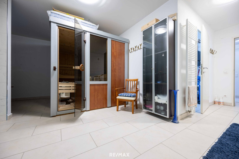 Ein besonderes Highlight ist die hauseigene Wellnessoase mit Sauna – ein Rückzugsort für Entspannung und Erholung im eigenen Zuhause.