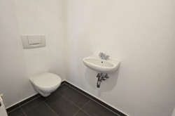 Das WC ist separat vom Eingangsbereich aus begehbar und verfügt über ein eigenes Handwaschbecken – ein praktisches Detail im Alltag.