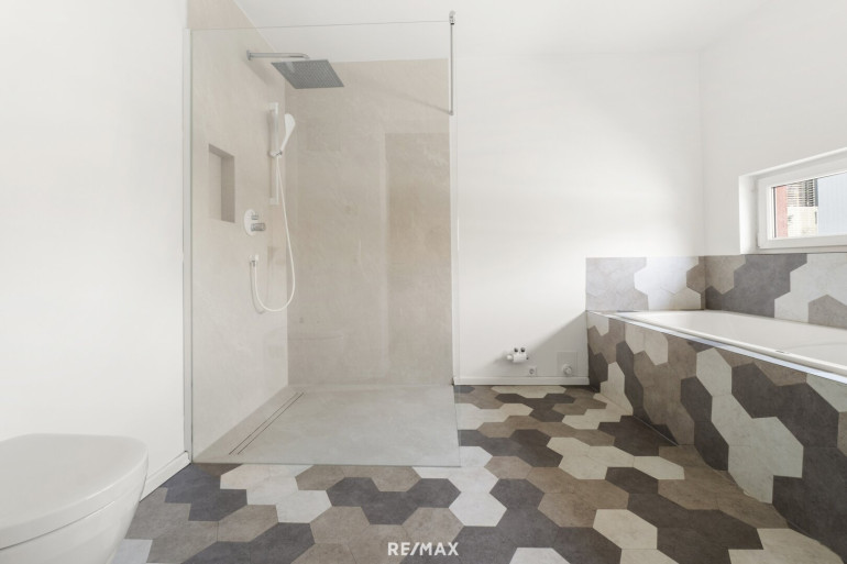 Die geschmackvoll ausgestattete Einbauküche fügt sich harmonisch in das Wohnkonzept ein und ist mit Herd, Backofen, Geschirrspüler und Kühlschrank vollständig ausgestattet, wodurch sie sowohl funktional als auch optisch überzeugt. Das Badezimmer verfügt über eine Fußbodenheizung und bietet mit Badewanne, Dusche, Waschtisch, WC und einem Fenster in Form einer Oberlichte eine angenehme Kombination aus Komfort und Tageslicht. Weiters gibt es ein separates WC sowie einen praktischen Abstellraum, der zusätzlichen Stauraum schafft und einen Wäsche-/Wirtschaftsraum. Die Beheizung erfolgt über Fernwärme mittels Zentralheizung und die Warmwasseraufbereitung über einen Strom-Boiler.