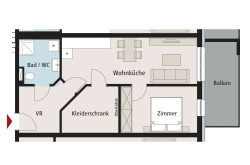 Vermietete 2-Zi-Wohnung mit Schrankraum und Balkon im 2. OG