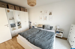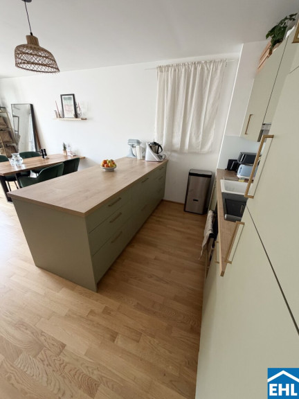 Die Wohnung selbst befindet sich im 1. Dachgeschoss und verfügt über eine großzügige Wohnküche, zwei getrennt begehbare Schlafzimmer, ein Badezimmer mit Badewanne und Waschmaschinenanschluss, ein separates WC, sowie einen Vorraum. Der Ost- und westseitigen Terrassen sind vom Wohnzimmer und Schlafzimmer aus begehbar und runden das Wohnerlebnis perfekt ab.