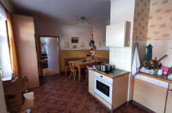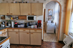 Die gerade aus zu erreichende Wohnküche ist mit einer Einbauküche eingerichtet und verfügt über einen Essplatz. Die Küche verfügt über einen Elektroherd und einen Geschirrspüler