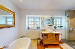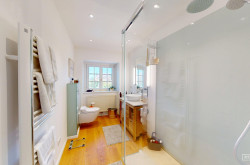 Drei Schlafzimmer, eines davon mit privatem Bad mit Dusche und WC · Großes Badezimmer mit Badewanne und Dusche · Separates WC, Flur