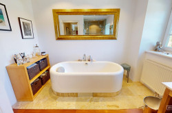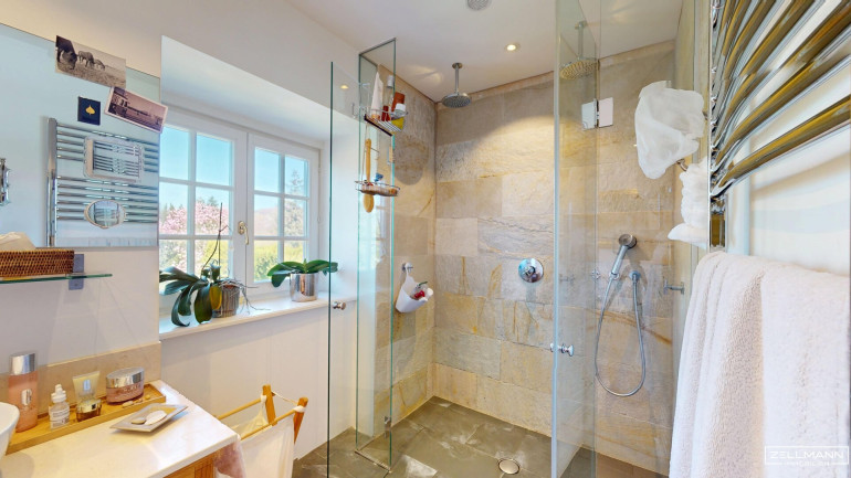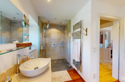 - Naturstein und hochwertige Fliesen in den Nassräumen