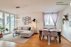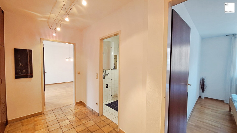 Der zentrale Vorraum ermöglicht den separaten Zugang zu allen Räumlichkeiten, was ein angenehmes und funktionales Wohnen gewährleistet. Der Wohnbereich, das Herzstück der Wohnung, präsentiert sich hell und einladend und bietet direkten Zugang zur ca. 7 m² großen Loggia, welche nach Südwesten ausgerichtet ist. Diese lädt dazu ein, sonnige Nachmittage und Abendstunden in ruhiger Atmosphäre zu genießen. Vom Wohnbereich aus, ist ebenfalls die gut ausgestattete Küche begehbar.