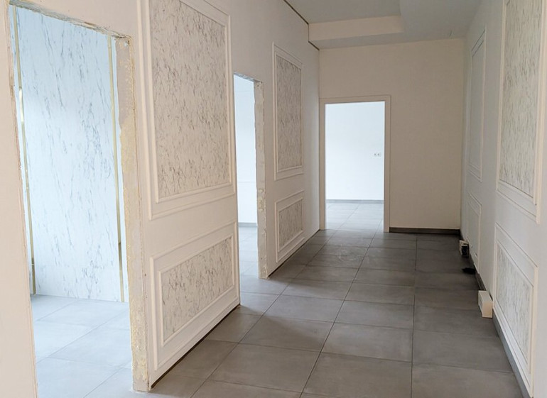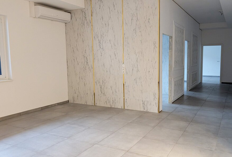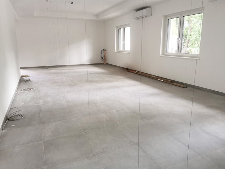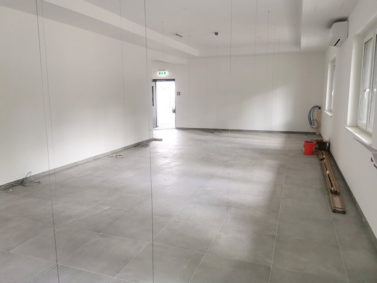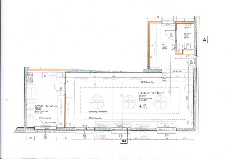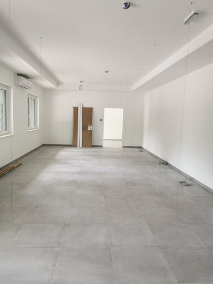 Das Geschäftslokal verteilt sich auf ca. 98 m², zuzüglich einer Terrassenfreifläche von 25 m² und einem KFZ-Stellplatz. Derzeit ist das Geschäftlokal durch Zwischenwände aufgeteilt in: einen großen Vorraum (Nutzung ev. als Wartebereich, Empfangsbereich), 3 Zimmer (Nutzung z.B. als Behandlungszimmer oder Büros), einem fertig komplettierten Sanitärbereich, Teeküchenanschlüße, Wohnungsübergabestation, Leerverrohrung Elektro im Stahlbeton, Decken, Klima, Rohverkabelung, Beleuchtung als Deckeninstallation. Die Zwischenwände von 2 Zimmer können entfernt werden, um den Hauptraum zu vergößern. (Variante B - siehe die letzten 3 Bilder)
