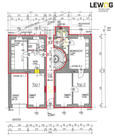 Das Haus verfügt zudem über ein Untergeschoss mit charaktervollem Ziegelgewölbe, welches Platz für Kellerabteile, Weinlagerung uvm. bietet. Die Garage mit elektr. Tor bietet Platz für ein Auto. Die Aufstockung und die damit verbundenen umfangreichen Sanierungen wurden alle in den späten 1990er- bzw. frühen 2000er Jahren durchgeführt.