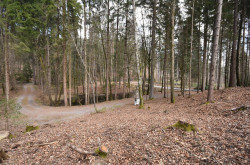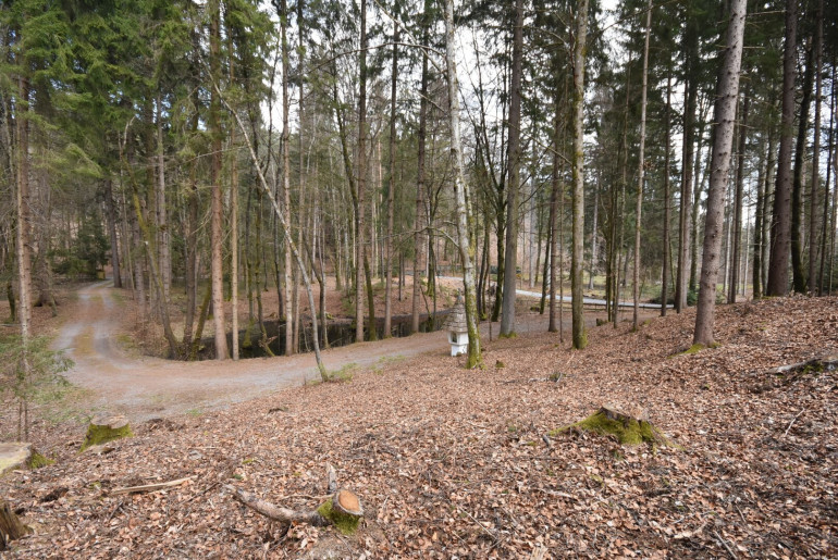 Neben der eigenen Zufahrt zum Grundstück, befindet sich ein kleiner Teich.